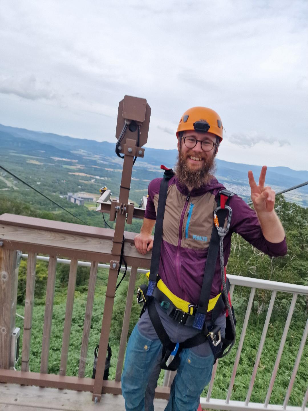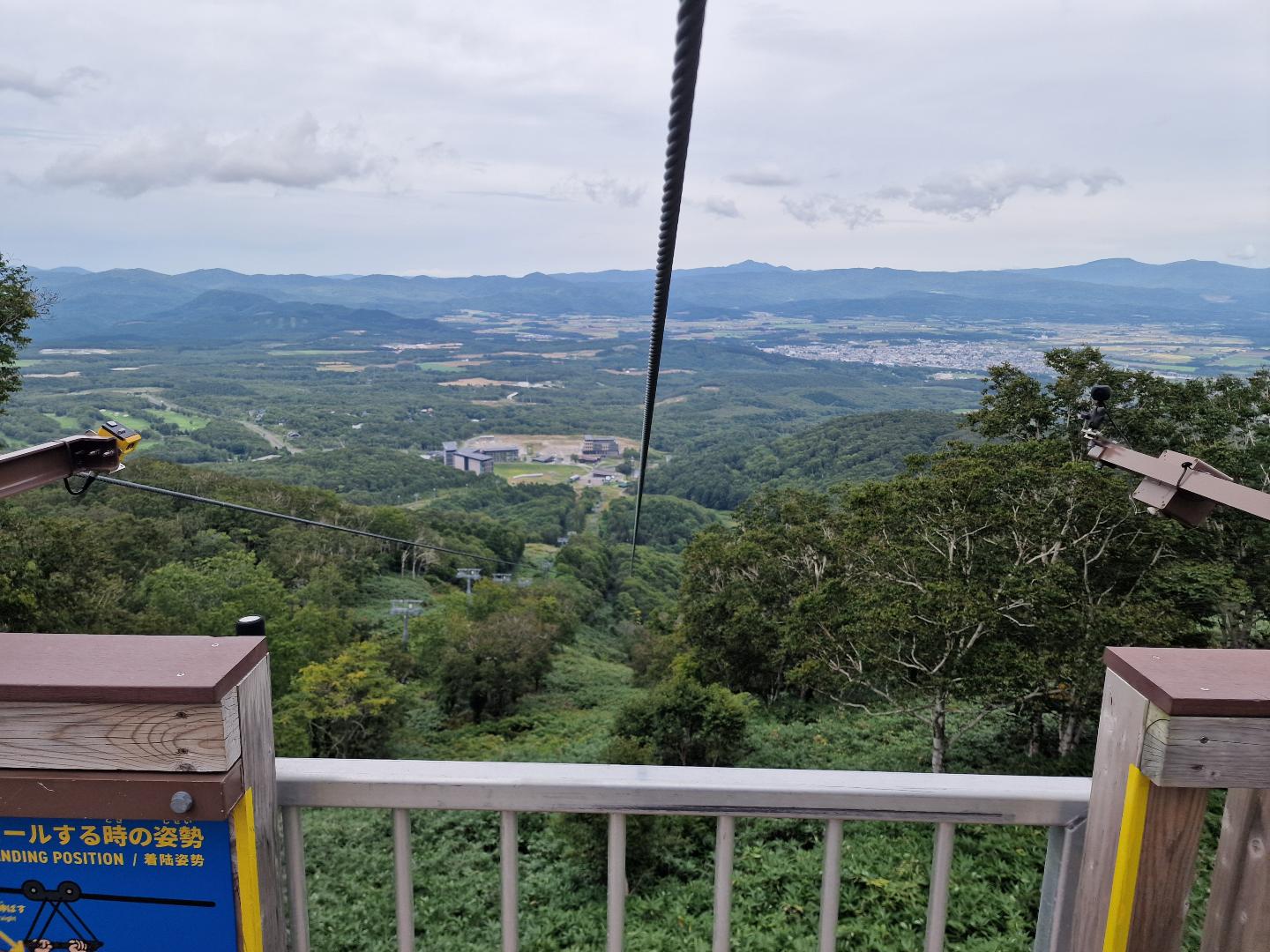 Det var tre ziplines, med stigende hastighet. De to første var på noen få hundre meter, og ga oss flott utsikt over Yōtei og landskapet rundt.