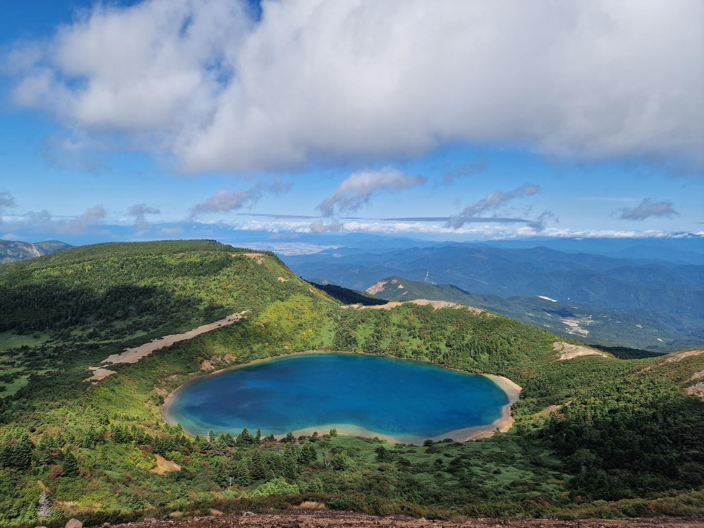 Fukushima, Fukushima Prefecture, Japan: Flott utsikt ned til krateret jeg besøkte i går.
