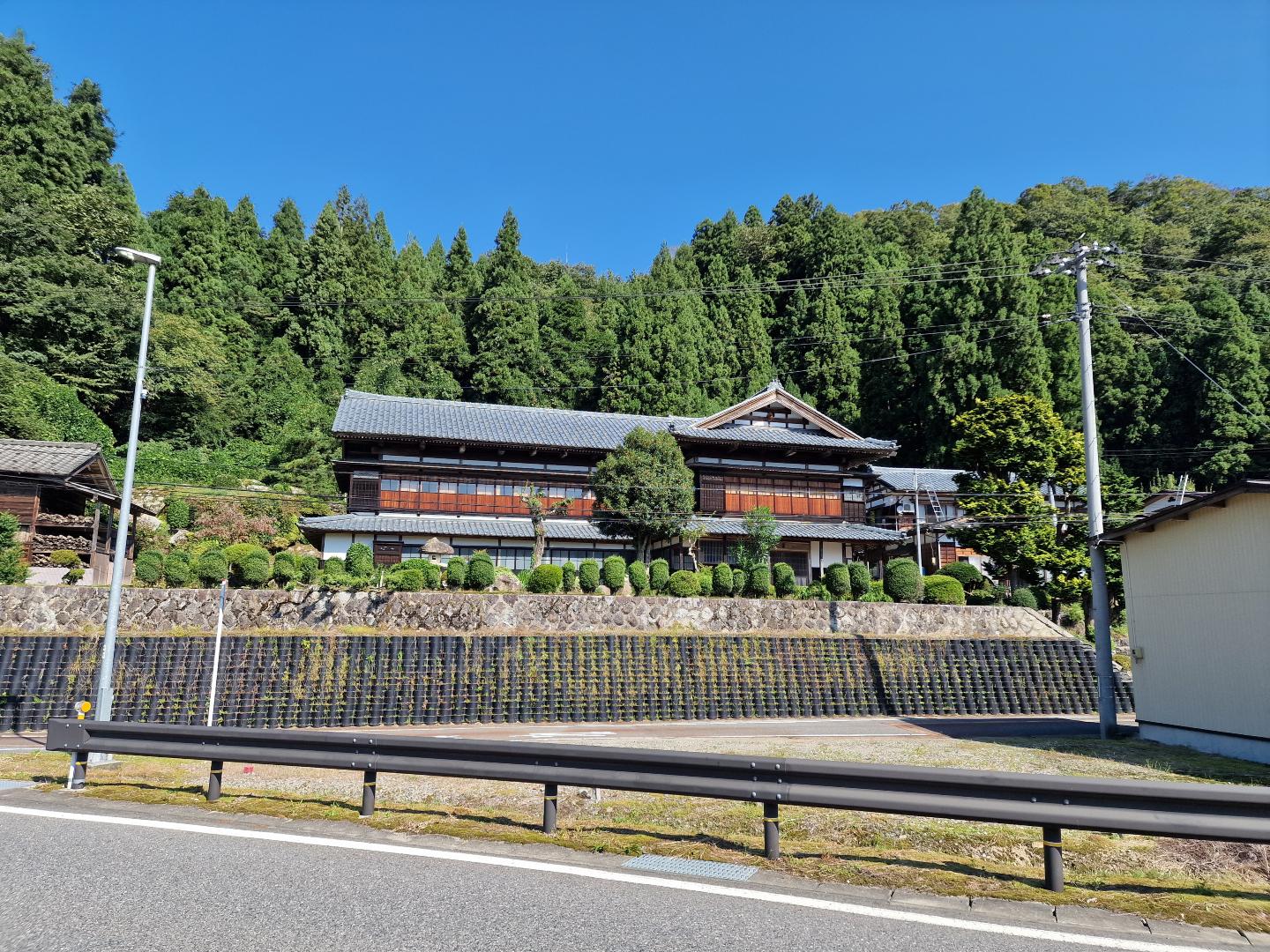 Aga, Niigata Prefecture, Japan: Syklet forbi et flott tradisjonelt hus.