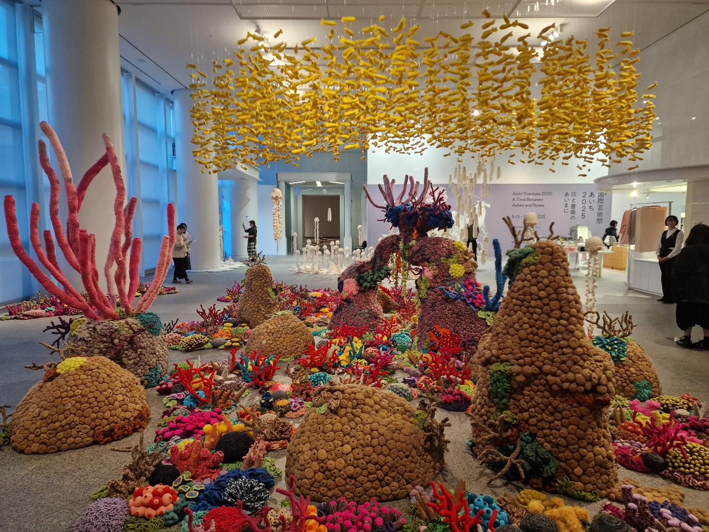Higashi Ward, Nagoya, Aichi Prefecture, Japan: Korallrev laget med strikking og hekling.