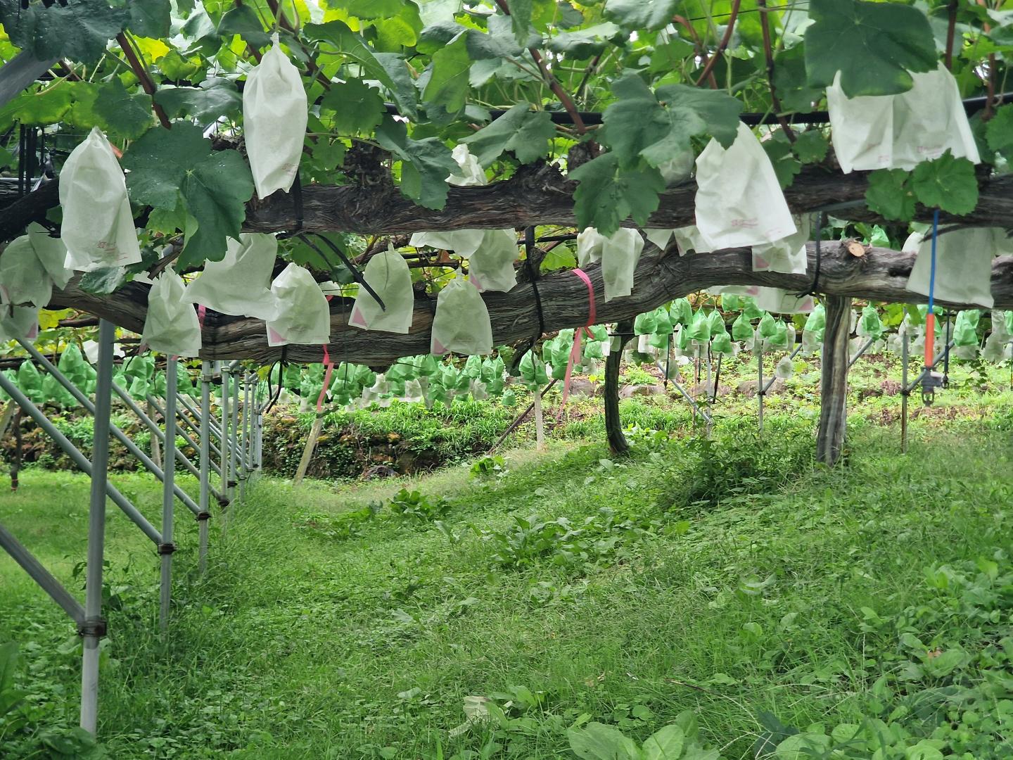 Chikuma, Nagano Prefecture, Japan: De pakker frukt i poser for å beskytte dem mot insekter og dyr.
