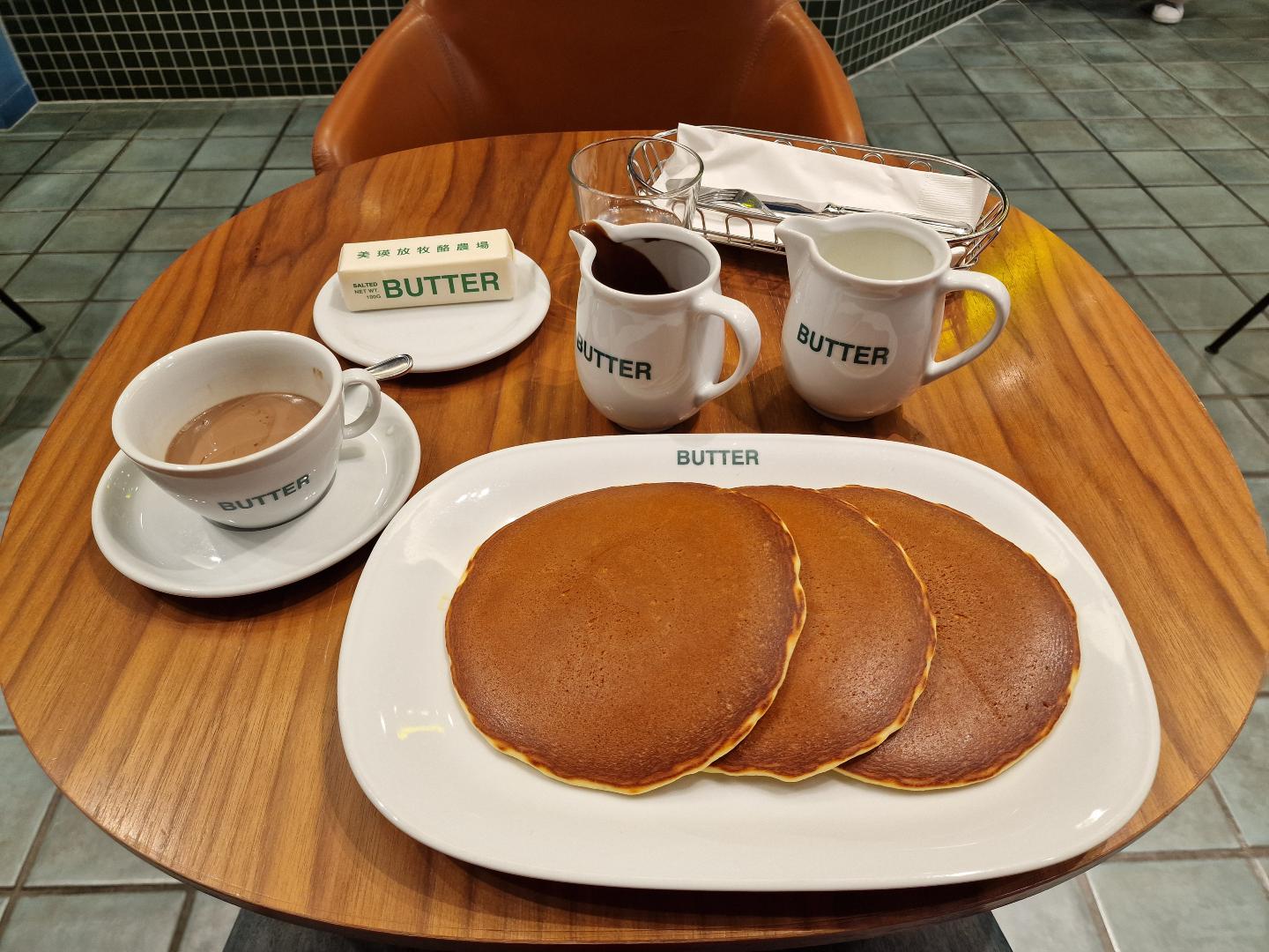 Chiyoda, Japan: Spise pannekaker med smør lagd i butikken, manglet litt salt. Gleder meg til Røros-smør!