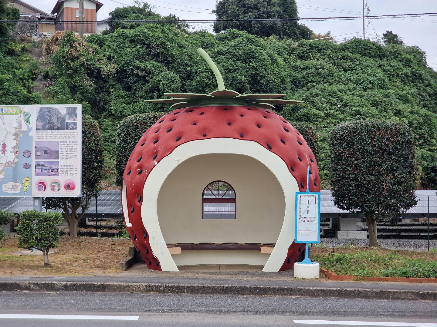 Isahaya, Nagasaki Prefecture, Japan: Busskur formet som et jordbær!