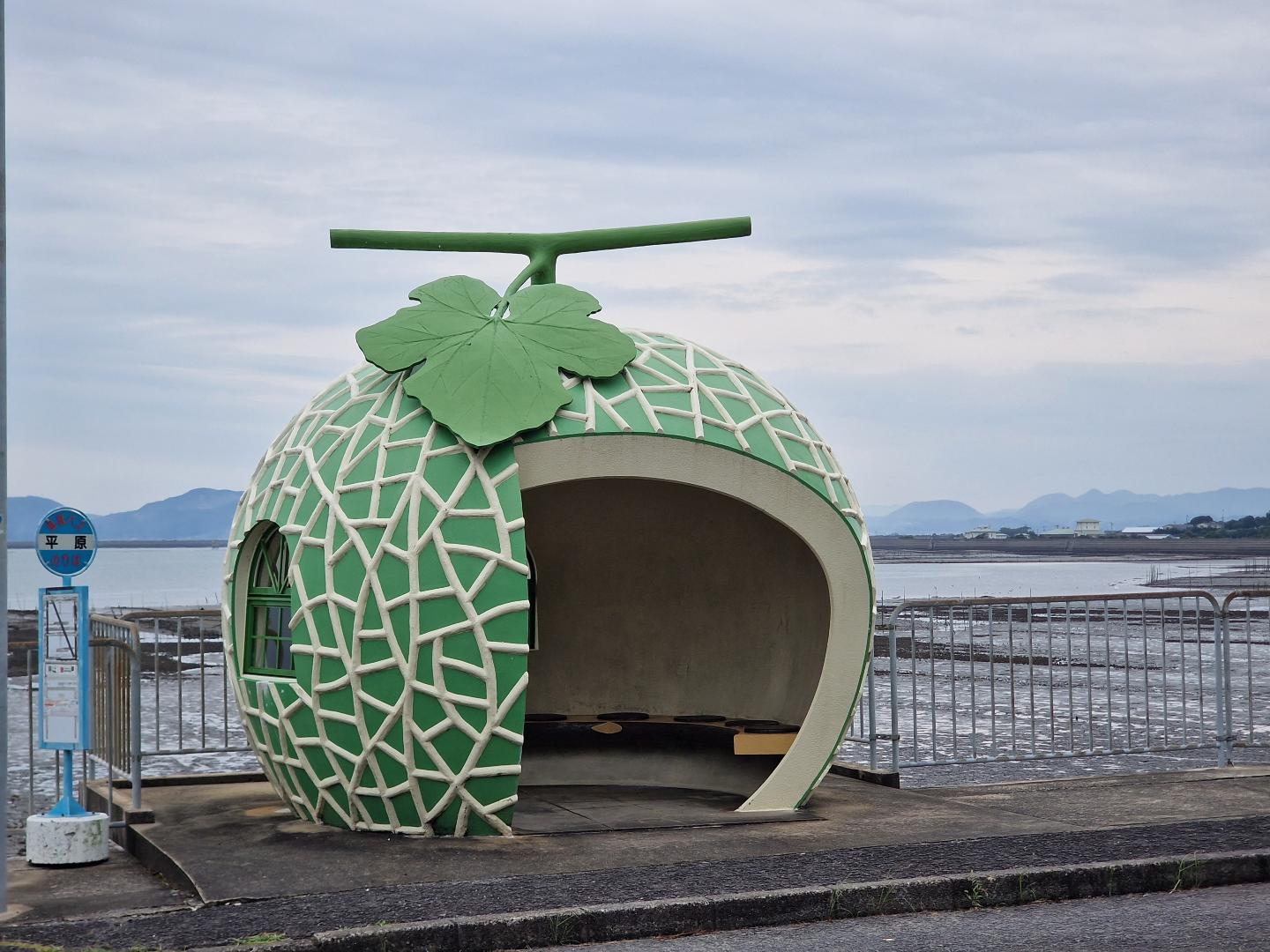 En av grunnen til at jeg hadde lyst til å sykle akkurat her var på grunn av en håndfull busskur som er formet som frukt og bær! La bare til to bilder her, men syklet forbi rød og gul tomat, vannmelon, og flere som var formet som jordbær og honningmelon.