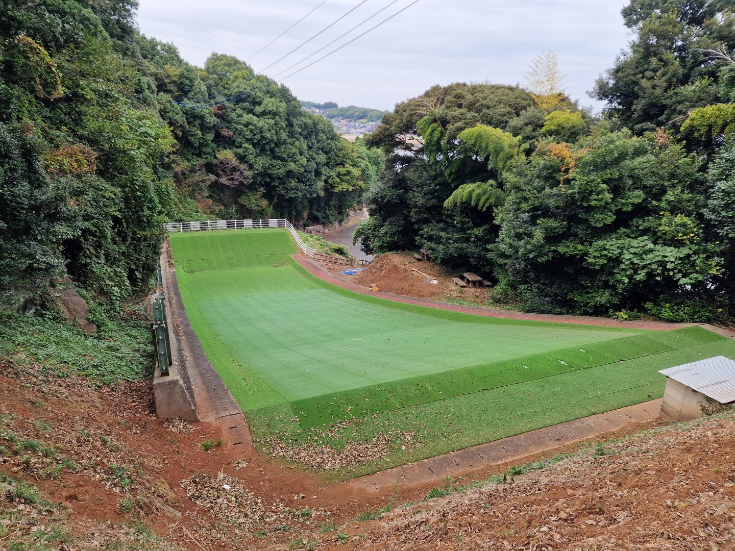 Tara, Saga Prefecture, Japan: Endelig fikk jeg prøvd en sånn gressakebakke! Gikk ikke så fort som jeg hadde håpet på.